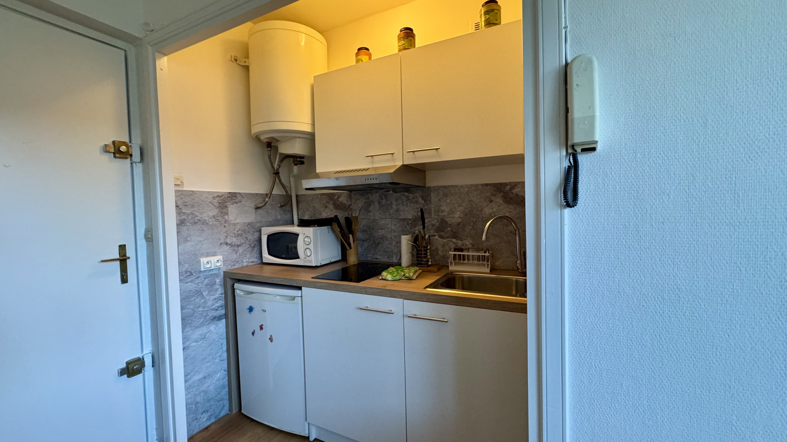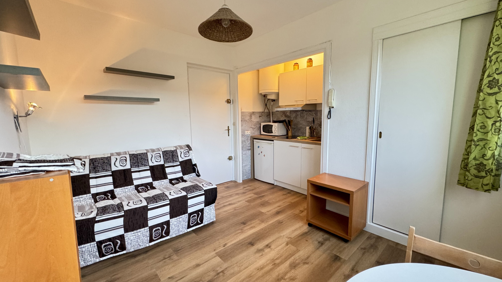 Avec sa vue dégagée sur ville et montagne, au calme et exposé Ouest, il est composé de : 1 pièce de vie avec kitchenette équipée avec canapé-lit (bz), 1 salle d'eau avec douche, wc et rangements.