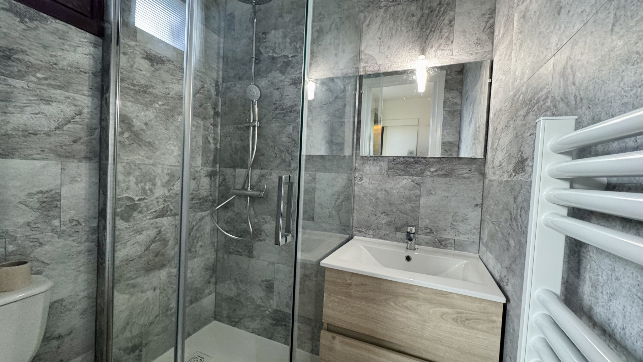 Les charges comprennent les charges générales de copropriété + eau froide. L'appartement dispose de radiateur et sèche-serviettes électriques. Double vitrage. Contrats électricité à souscrire.