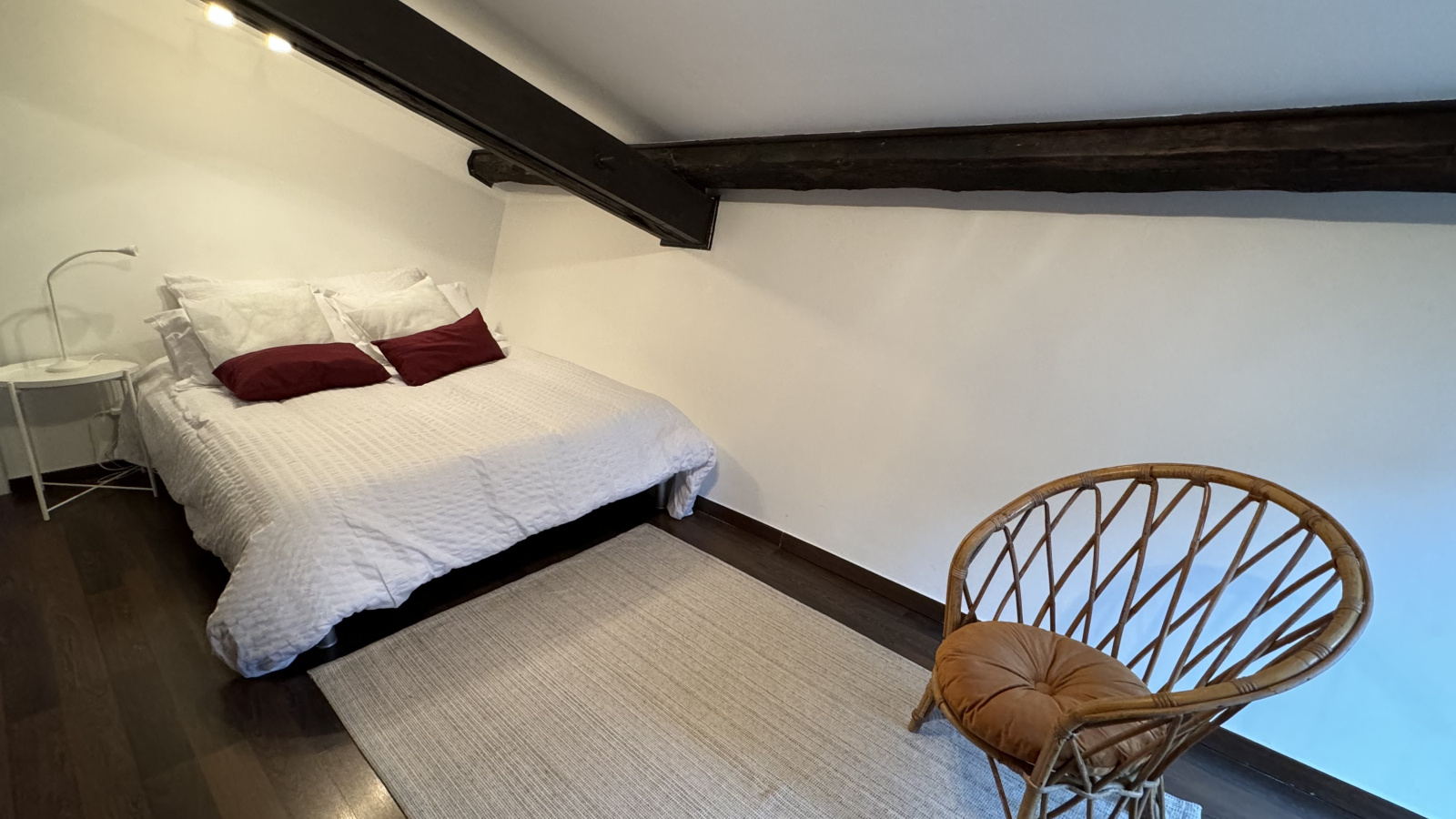 Disponible, magnifique appartement entièrement meublé, équipé et accessoirisé de type LOFT tel une maison de ville au style très cosy et à la décoration soignée (mélange de pierres apparentes et de métal). Avec une très belle hauteur sous plafond, il possède de 3 grandes ouvertures vélux dans la cuisine et le salon/séjour. Sa surface développée est de 85.78m2 (73.85m2 loi Boutin) et son entrée est totalement indépendante et séparée de la copropriété. Tout ce qui est présent sur les photos fait partie intégrante de la location de l'appartement.
