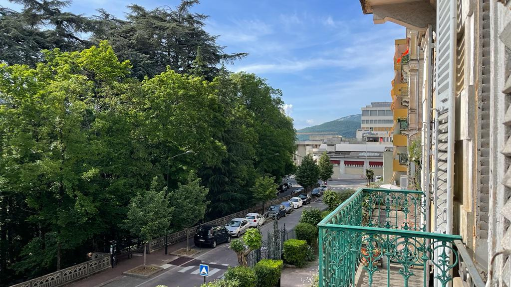 Idéalement situé à Aix les Bains, proche des commerces, des thermes Chevaley et des transports, à 7 min à pied de la gare, les pièces de ce logement sont baignées par une belle luminosité tout au long de la journée, et il profite d'une belle vue sur le Parc de Verdure, sans vis à vis . Il dispose également d’un agréable balcon d’environ 2 m².