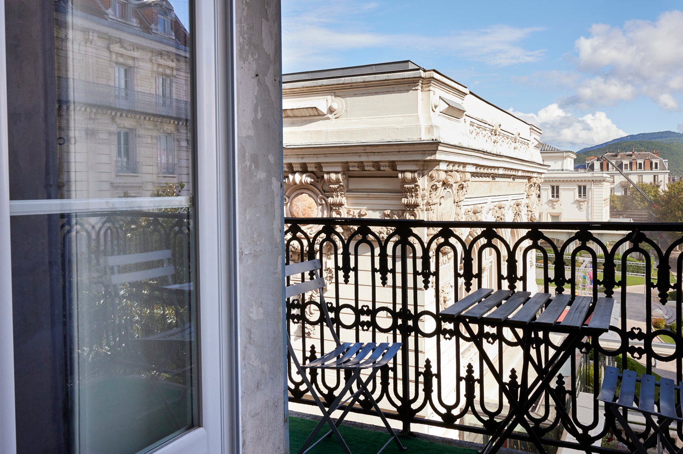 Idéalement situé EN HYPER CENTRE à Aix les Bains, à proximité des transports (Gare SNCF, bus, taxi, petit train touristique), nous vous proposons cet exceptionnel Studio entièrement rénové avec soin dans un style néo-classique chic. Lumineux, il offre, depuis son balcon, une vue très agréable et dégagée sur l'architecture de bâtiments de la Belle Epoque et sur la ville. Situé au 2ᵉ étage surélevé d'un ancien Palace, édifié en 1853, ce bien bénéficie d’un emplacement exceptionnel où tout est à proximité. Par exemple, vous trouverez pour vos promenades : parc de verdure et bois vidal, Pour vos achats : tous commerces, Pour tous vos services quotidiens : mairie, parking, Pour votre sécurité : services de police et de gendarmerie... Egalement, pour les sports d'hiver, entre 30 min et 1 h de voiture pour accéder à différentes stations de ski, et bien entendu le lac du Bourget en moins de 10 min en voiture ou 30 min à pieds.